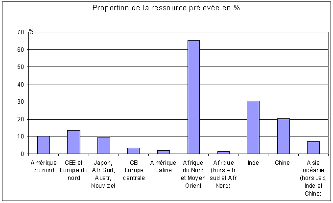 Les prélèvements en eau par secteur pour 10 zones géopoliques dans le monde (Goossens et Bonnet, 2001)